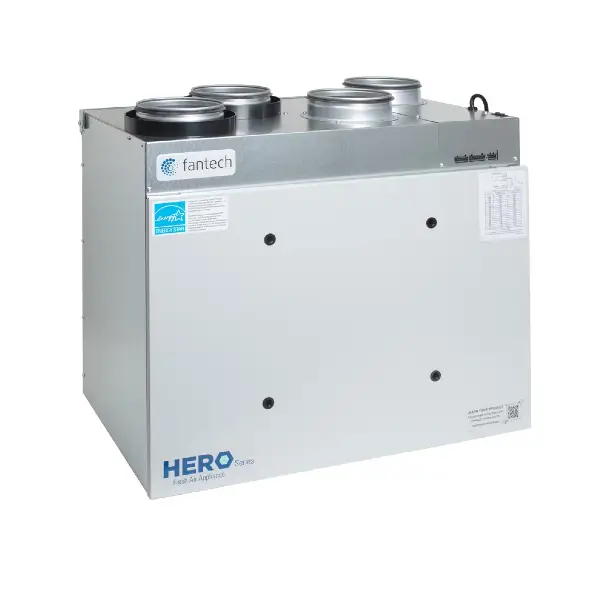 HERO provides the balanced ventilation required by ENERGY STAR and contributes energy savings through heat recovery and low fan power. These savings are reflected in the home’s total modeled energy use. It can also help reduce heating and cooling system sizing. The ERV supports the overall performance metrics for ENERGY STAR qualification, without adding a penalty for required ventilation.