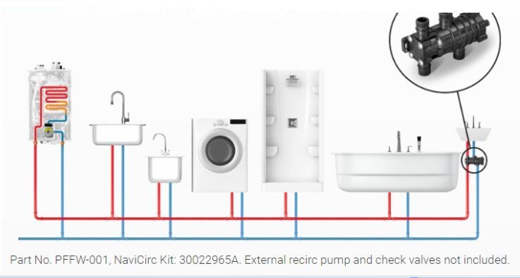 Navien Navi-Circ 30022965A Recirculation Valve Kit Horizontal NPT 150 PSI 32-122°F 0.53-1.06 GPM For Tankless Water Heater For NPE-A With 2-Hoses, Adapters